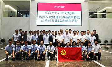 不忘初心、牢記使命——福斯特與財通證券黨組共建活動順利舉行 [2019-07-12][2019-07-12]為加強企業之間黨建工作交流,7月12日下午,財通證券黨委副書記胡國華等領導率黨員交流團到福斯特舉行黨組共建活動。福斯特黨總支書記林建華、副書記錢軍強、黨委委員等相關人員參加。雙方在會議室進行主題為“不忘初心,牢記使命”的黨建學習交流討論會。[查看詳情]