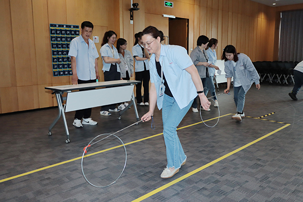 中午,福斯特工會組織開展“童趣端午”主題文化活動,通過夾彈珠、踢毽子、轉陀螺、滾鐵環(huán)等懷舊小游戲,讓員工重溫童年的時光。每完成一個小游戲任務,可以獲得一枚印章,集齊四枚就能兌換一份小禮品。員工們玩的不亦樂乎,紛紛表示既有趣又溫馨,仿佛回到了童年。