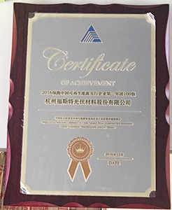 2016領(lǐng)跑中國可再生能源先行企業(yè)第一軍團100強獎牌