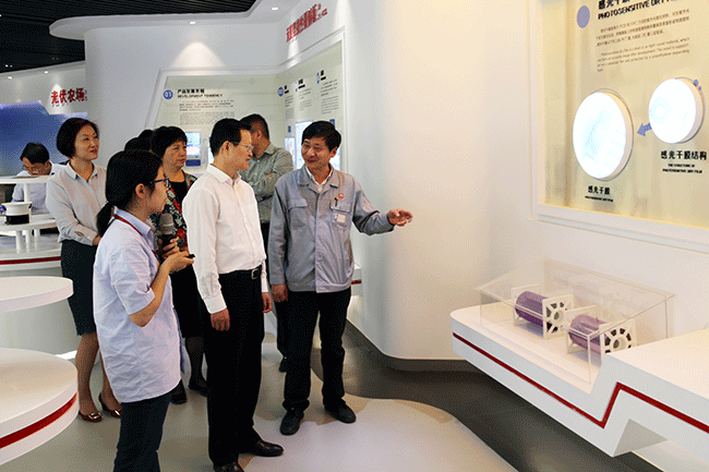 福斯特總經理王邦進陪同調研組一行來到研究院科技館和研發實驗室進行參觀,并就公司近年來研發和創新情況進行匯報。