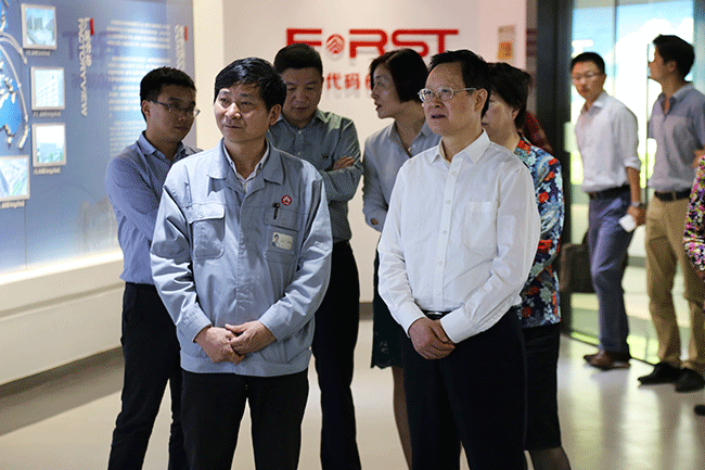 4月19日,杭州市副市長謝雙成,杭州市人民政府辦公廳、杭州市商務委、杭州市經合辦等單位負責人一行在市領導沈建、張敏的陪同下蒞臨浙江福斯特新材料研究院調研指導。