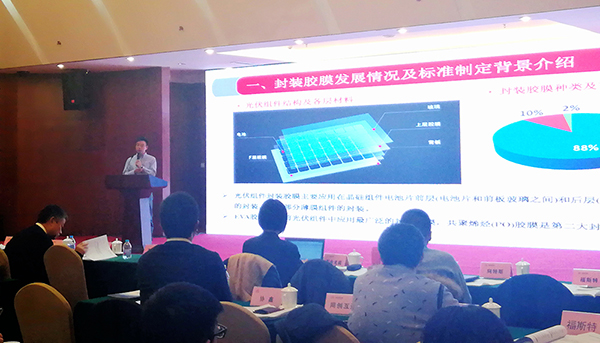 由杭州福斯特應(yīng)用材料股份有限公司作為主編單位的《T/CPIA 0004-2017光伏組件封裝用乙烯-醋酸乙烯酯共聚物(EVA)膠膜》和《T/CPIA 0006-2017光伏組件封裝用共聚烯烴(PO)膠膜》是其中重要兩項。公司副總經(jīng)理周光大博士應(yīng)邀對兩項標(biāo)準(zhǔn)制定過程、性能指標(biāo)、標(biāo)準(zhǔn)意義進行了詳細解讀。其中,PO膠膜標(biāo)準(zhǔn)填補了全行業(yè)空白,有力扭轉(zhuǎn)了當(dāng)前PO膠膜產(chǎn)品先行而標(biāo)準(zhǔn)缺失的局面;EVA膠膜標(biāo)準(zhǔn)則是在2013版國標(biāo)的基礎(chǔ)上,大幅增加了產(chǎn)品長期可靠性、電性能安全性、白色EVA等產(chǎn)業(yè)前沿內(nèi)容。