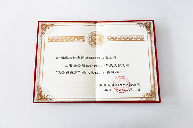 福斯特榮獲2017年度天合光能優(yōu)秀供應(yīng)商