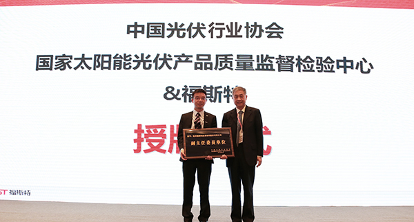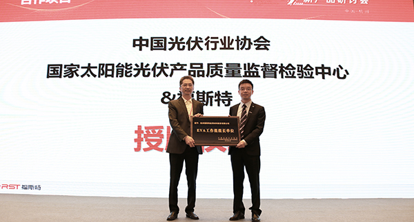 吳建國院長致辭并為福斯特榮膺“中國光伏行業協會EVA工作組組長單位”授牌,并與林建華董事長共同簽訂國家太陽能光伏產品質量監督檢驗中心&福斯特戰略合作協議。同時,福斯特POE膠膜(TF4)、背板(BEC-301T、BEC-306T)產品榮獲中心頒發的“高端綜合耐候性安全認證”證書,這是對福斯特產品品質和性能的高度肯定,更展現了福斯特在產品技術創新上的綜合實力。