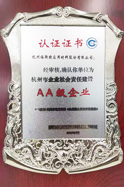 福斯特通過杭州市企業社會責任建設AA級企業認定