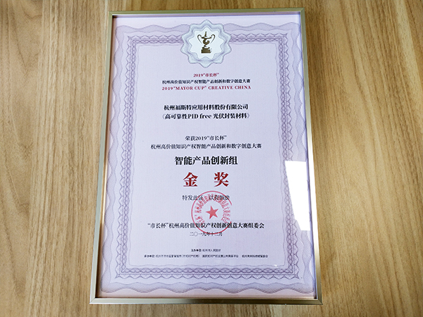12月12日,2019“市長(zhǎng)杯”杭州高價(jià)值知識(shí)產(chǎn)權(quán)創(chuàng)新創(chuàng)意大賽決賽在杭州成功舉行,福斯特《高可靠性PID free 光伏封裝材料》項(xiàng)目喜獲決賽金獎(jiǎng)。