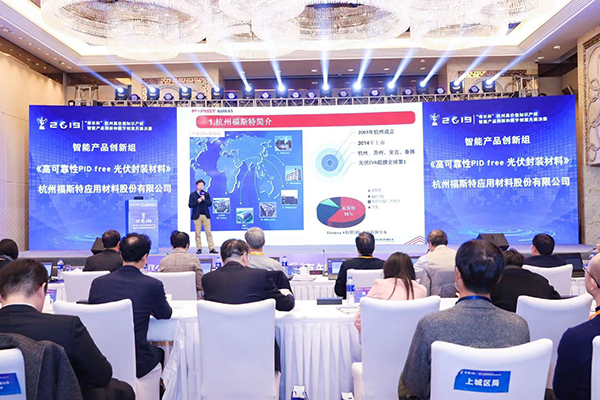 福斯特總經(jīng)理周光大對(duì)參賽項(xiàng)目《高可靠性PID free 光伏封裝材料》進(jìn)行現(xiàn)場(chǎng)講解,并對(duì)專家的現(xiàn)場(chǎng)提問(wèn)進(jìn)行答辯。經(jīng)過(guò)專家評(píng)審委員會(huì)的評(píng)選以及杭州市互聯(lián)網(wǎng)公證處公證人員的監(jiān)督,福斯特最終摘得智能產(chǎn)品創(chuàng)新組的桂冠。